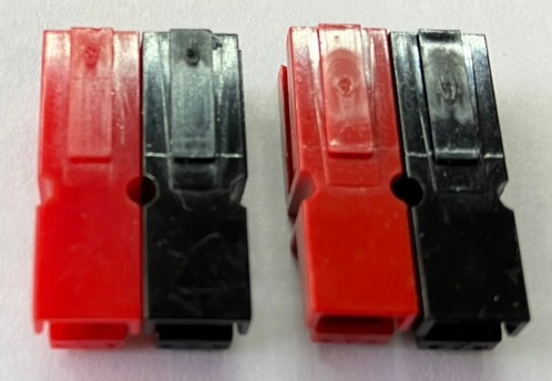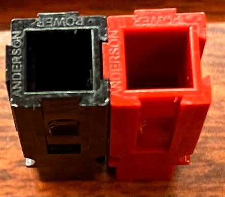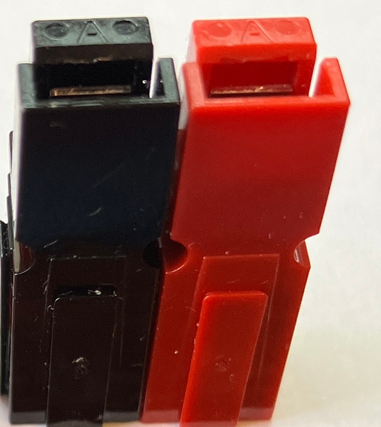 On the sets above, notice that the circles on either side of the A are deeper an better defined on the authentic Anderson PowerPoles on the right, than on the knock-offs on the left (easier to see in this picture on the black connectors).