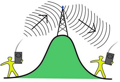 Repeaters are a type of a radio system usually comprised of 2 radios (one for receiving, and one for transmitting) that listens for your voice transmission on one frequency (the input frequency) while simultaneously retransmitting the same audio back out on another frequency (the output frequency) that you listen on. These radio systems are usually located on a high tower or hill allowing for a very wide area of coverage due to the better line-of-sight to the antenna for those using the repeater. They also generally will have 50 watts or more of output so their signal is strong and easily heard within its coverage area. This allows people with much less powerful radios (like handhelds) to talk to others in a much larger coverage area than would be possible with just their radio at a lower power and with less line of sight. As an example, imagine 2 people on opposite sides of a mountain. Neither person’s radio has line of sight to the other, but they both have line of sight to the repeater antenna high up on a tower on a mountain. The repeater both listens and retransmits the transmission on separate frequencies (this is called duplex) so that one person can talk while others listen.